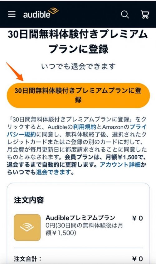 Audibleの入会方法(スマホで2分)