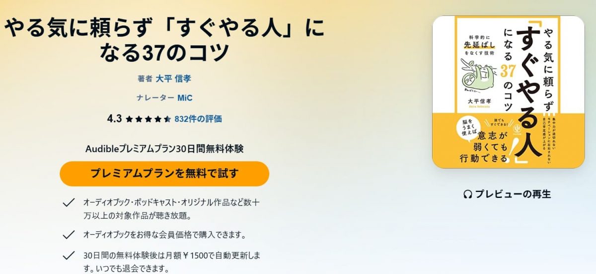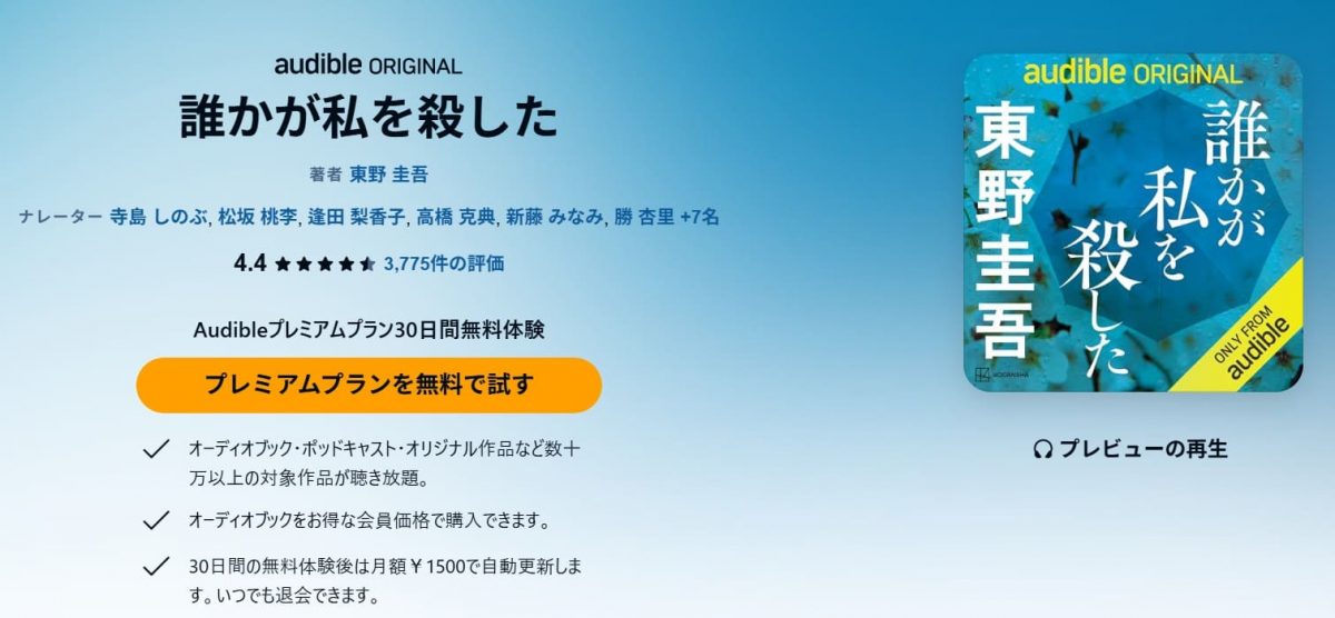 関連記事:【Amazon Audible】読書が苦手なら聴けばいい。無料体験30日間の入会と退会を解説